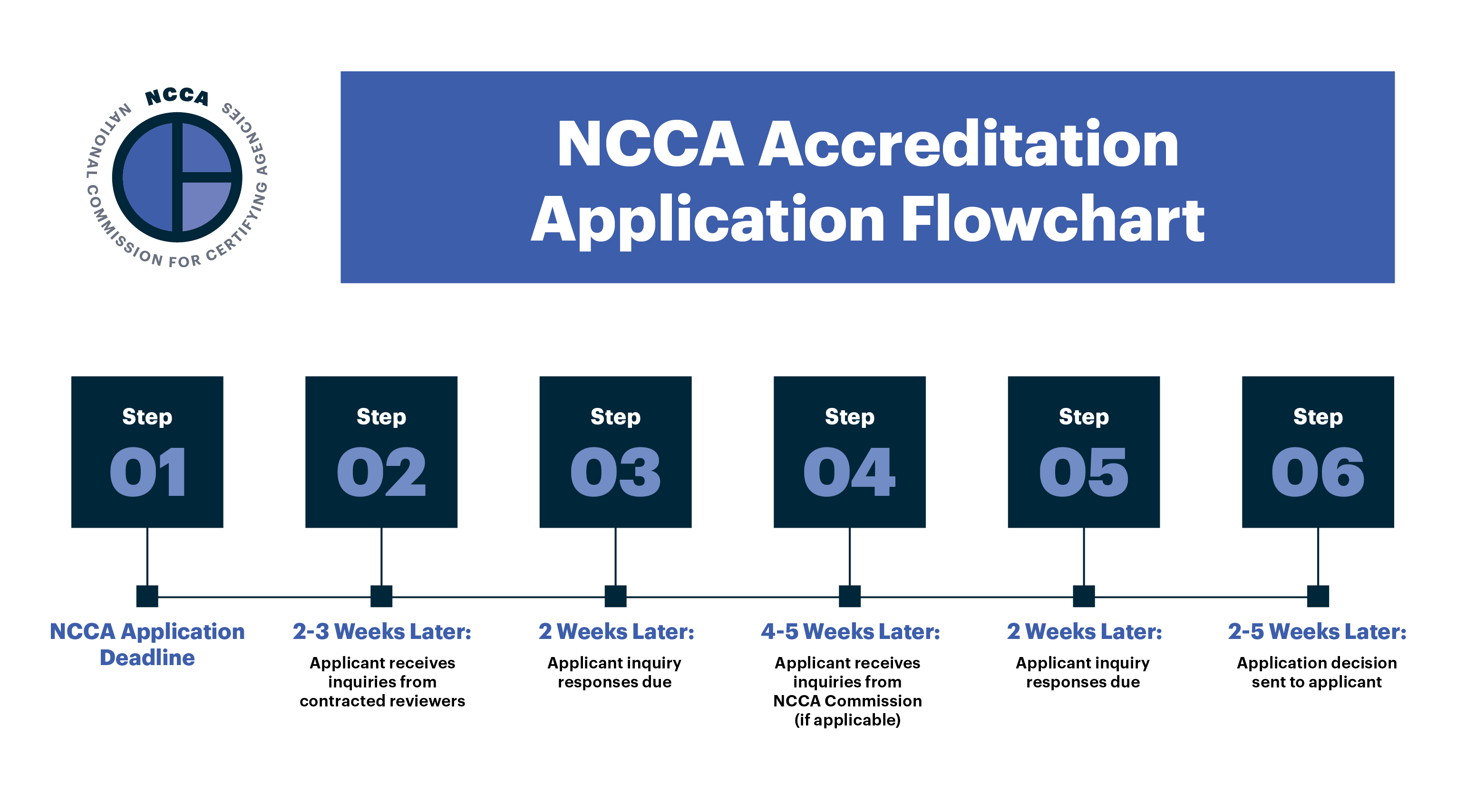 The NCCA application process is thorough to ensure compliance with all outlined standards. The process can take up to 4-5 months to go through the full review cycle. Applications are open three times a year.